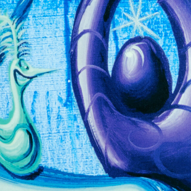 Archival pigment ink print with silkscreened high gloss varnish and diamond dust on Innova Etching Cotton Rag 315 gsm fine art paper