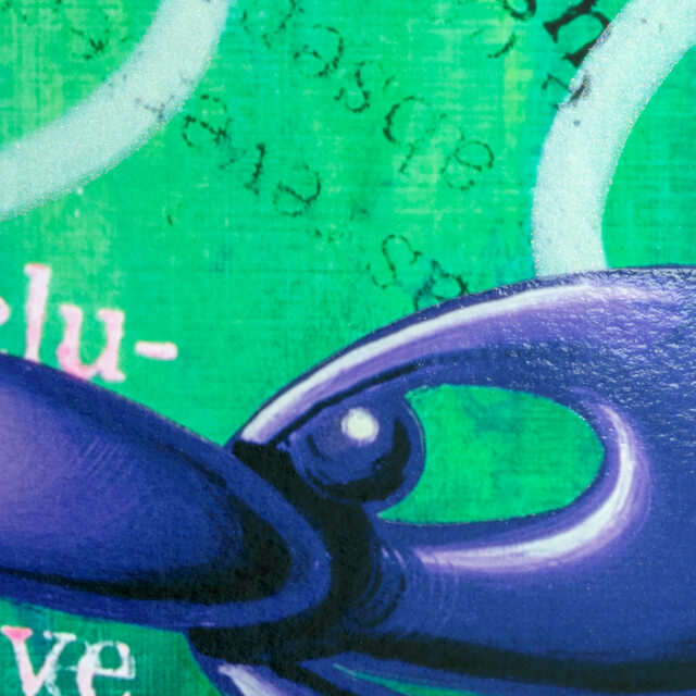 Archival pigment ink print with silkscreened high gloss varnish and diamond dust on Innova Etching Cotton Rag 315 gsm fine art paper